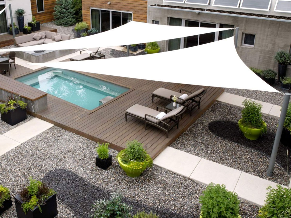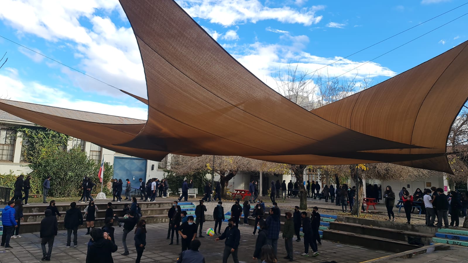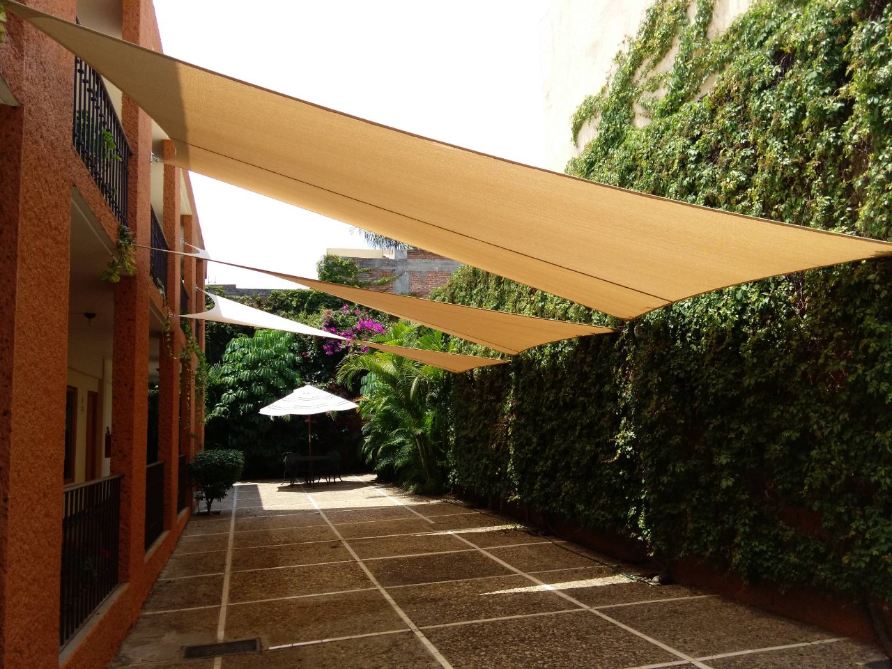 Toldo Vela para exteriores como patios de Colegios, Universidades, Instituciones, Edificios, Terrazas, con protección solar con diseño y estilo.